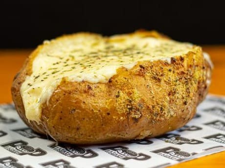 Batata grande própria para recheio, assada ao forno recheada com purê da batata, requeijão cremoso e muçarela