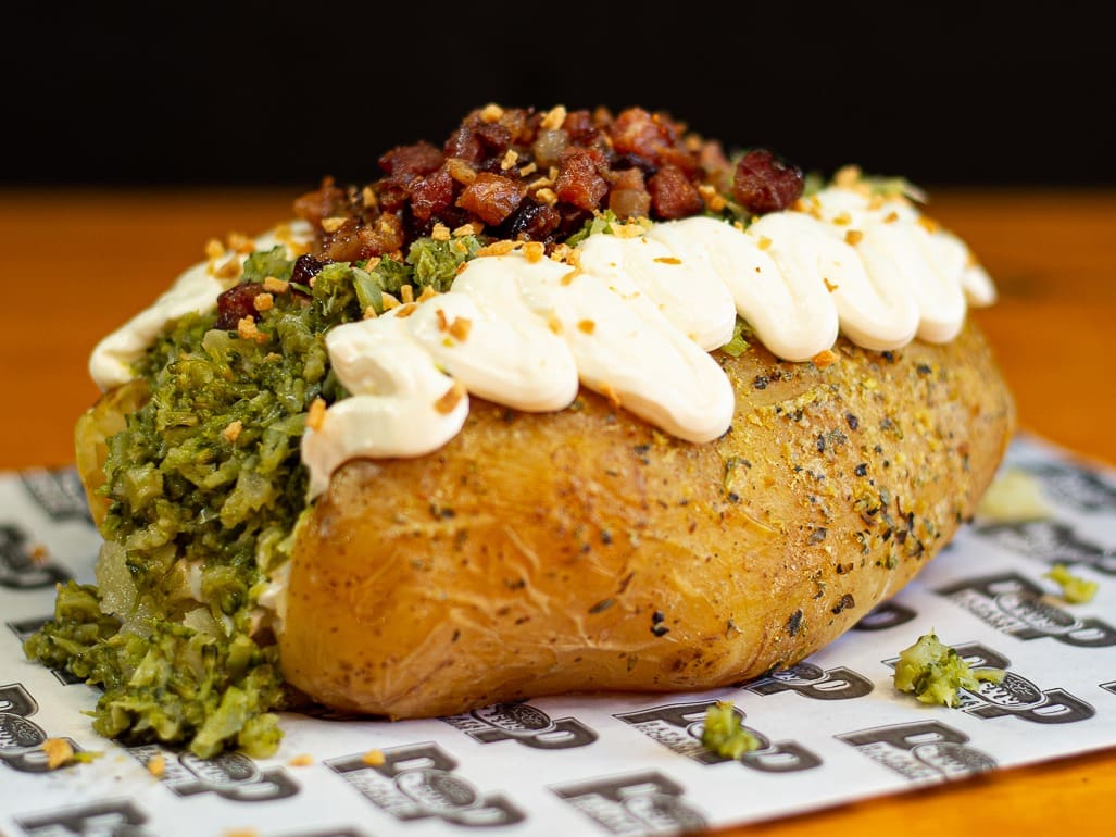 Essa com toda certeza é a batata mais charmosa e saborosa do nosso cardápio, recheada com purê da batata, requeijão cremoso, brócolis na manteiga, bacon em cubos e alho frito